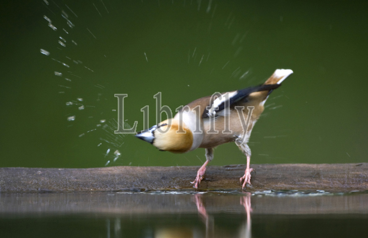 Hawfinch at drinking site, Coccothraustes coccothraustes