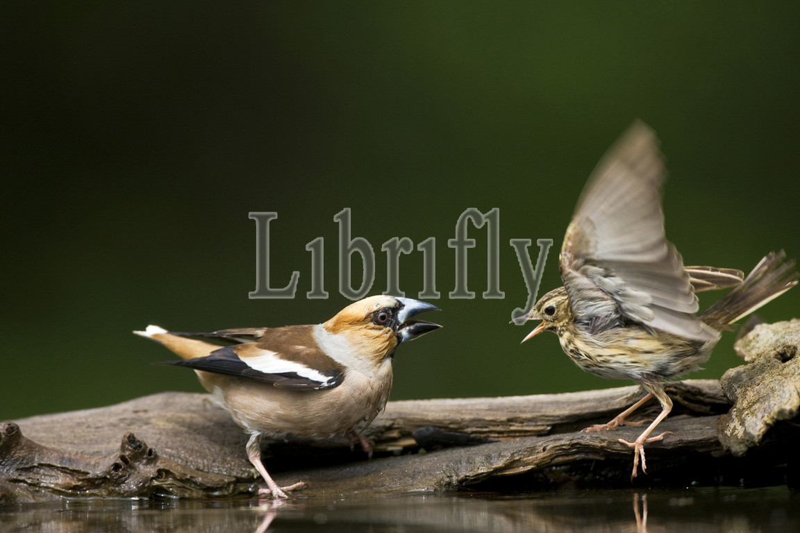 Hawfinch at drinking site, Coccothraustes coccothraustes