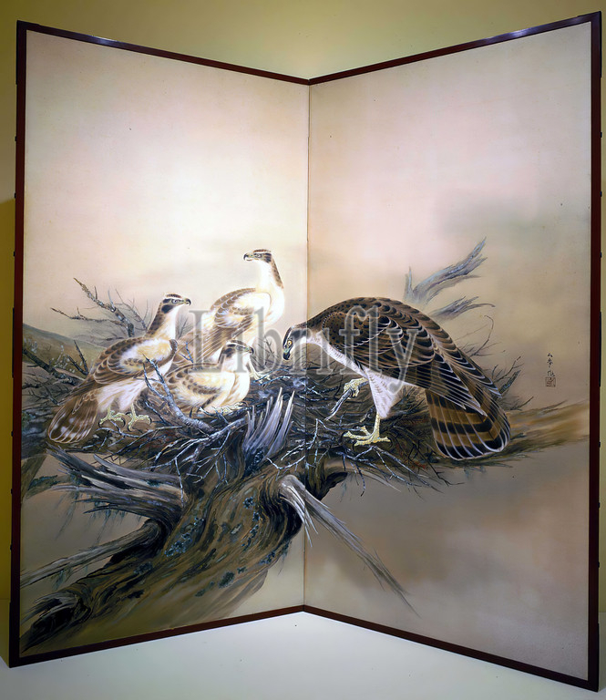 Hawks, Nest and Broken Tree, Toida Goho 樋田五峰 (Japanese, 1898-1943), about 1935, ink and colors on silk, 70-3/8 x 70-3/4 in., Asian Art