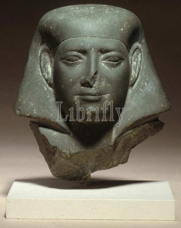Head, male statue, Middle Kingdom–Early New Kingdom, Dynasty 12–18, ca, 1981–1550 B.C, Egypt, Greywacke, H, 11 cm, 4 5/16