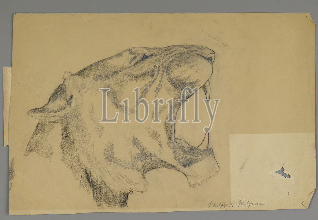 Head of Roaring Lion, recto and Bison, verso, Philip H. Wolfrom, American, 1870-1904, Graphite and charcoal on paper, n.d., Sheet: 9 7/8 x 15 in., 25.1 x 38.1 cm, animal, drawing