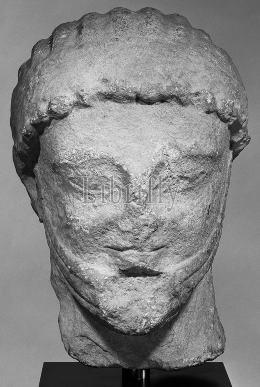 Head from a Statue of a Male Figure; about 500 B.C; Limestone; 29.5 × 19.5 × 14 cm (11 5,8 × 7 11,16 × 5 1,2 in.)
