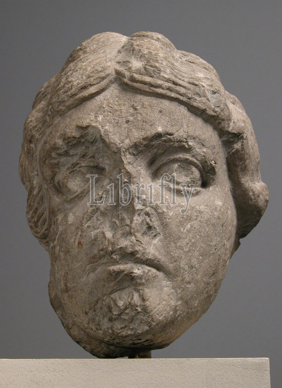 Head, Youth, ca, 1150–75, Provence, France, French, Limestone, Overall, 7 1/16 x 5 11/16 5/8, 18 14.4 14.3 cm, Sculpture-Stone, pilgrimage, church, Saint-Gilles-du-Gard reveals, strong influence, antiquity, Romanesque art, head, associated, stylistic grounds, demonstrates, influence, locally available, ancient, Roman, sculpture