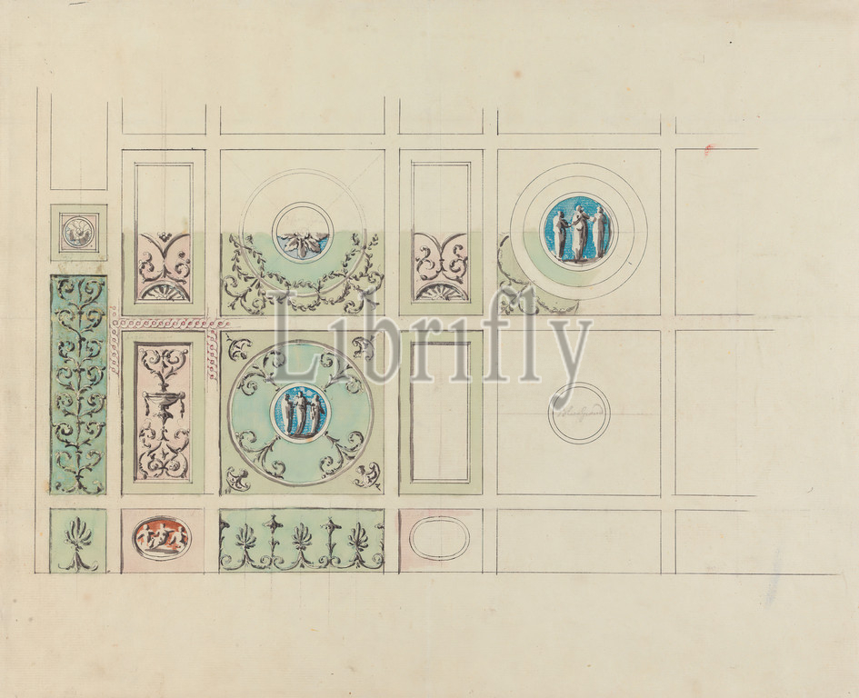 Headfort House, Ireland, Ceiling, Eating Parlor, Robert Adam, 1728–1792, British, 1771, 1775, Graphite, pen, black ink, watercolor, medium, slightly textured, cream laid paper, Sheet, architectural subject, ceilings, dining rooms, Neoclassical, Headfort House, Ireland, Kells