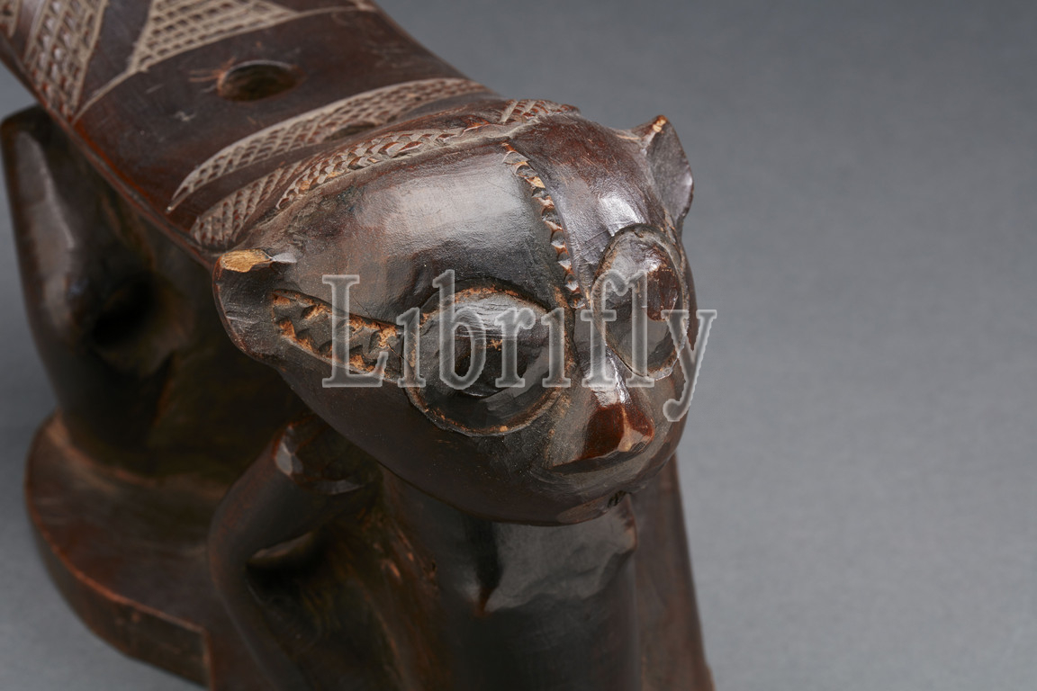 headrest with human figures, Kuba people, 20th century, wood, L: 10-5/8 in., African Art