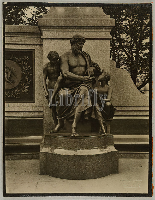 Heinrich Hamann, Atelier J, Hamann, Johann Hinrich W, Hamann, Allegory, measures, coins, Hamburg Kaiser-Wilhelm-I., Monument, silver gelatin paper, black, white positive process, dry stamp, J, HAMANN, Hamburg, stamp, verso, on, cardboard, J, Hamann, Hamburg 1, Neustädterstr, kinds, awarded Hamburg 1899, reporting photography, sculpture, sculpture, sculpture art, man, child, monument, statue, coin, sitting figure