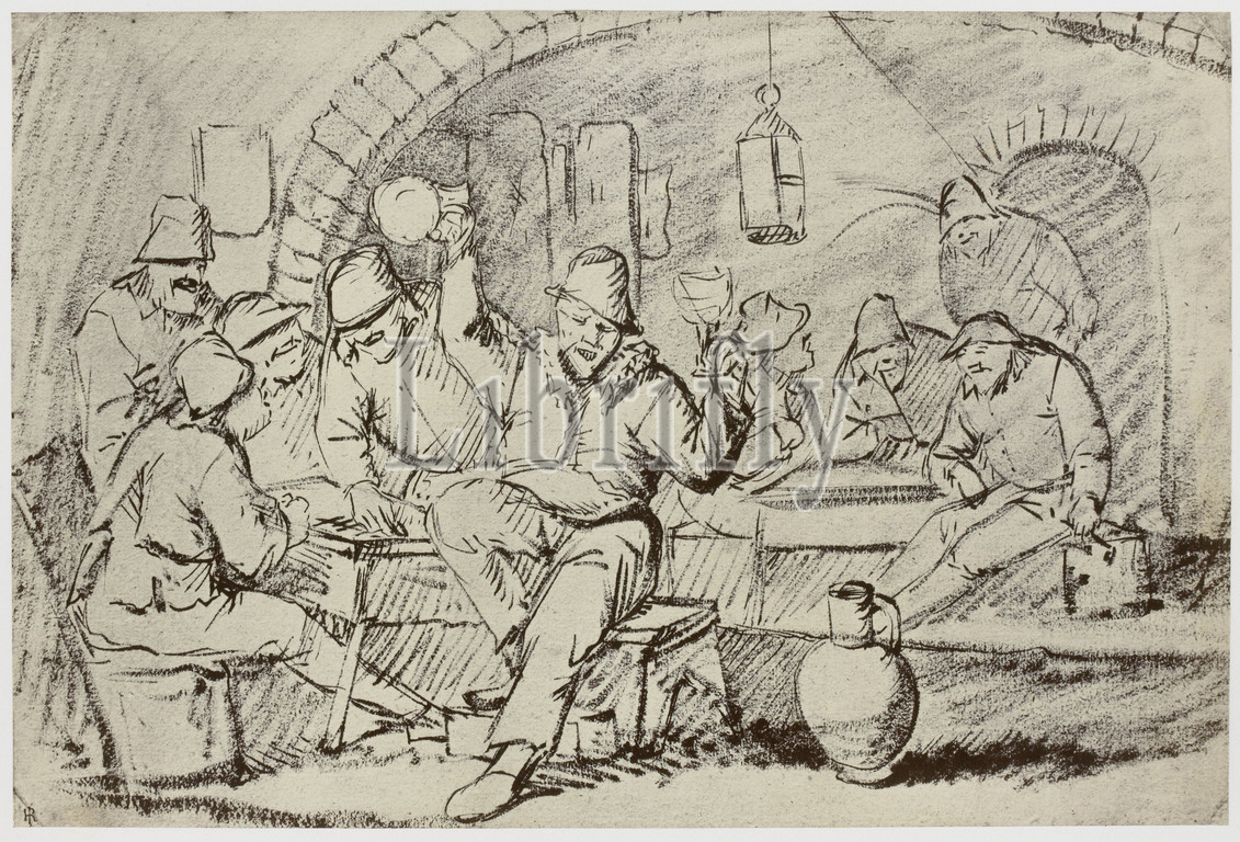 Hemskirk, Van Heemskerck?, Boors Carousing, drawing, Reveley Collection, Drawings, Brynygwin', fig, 38, Philip Henry Delamotte, Thomas Frederick Hardwich, 1855, 1858, paper, albumen print, height 208 mm, width 313 mm