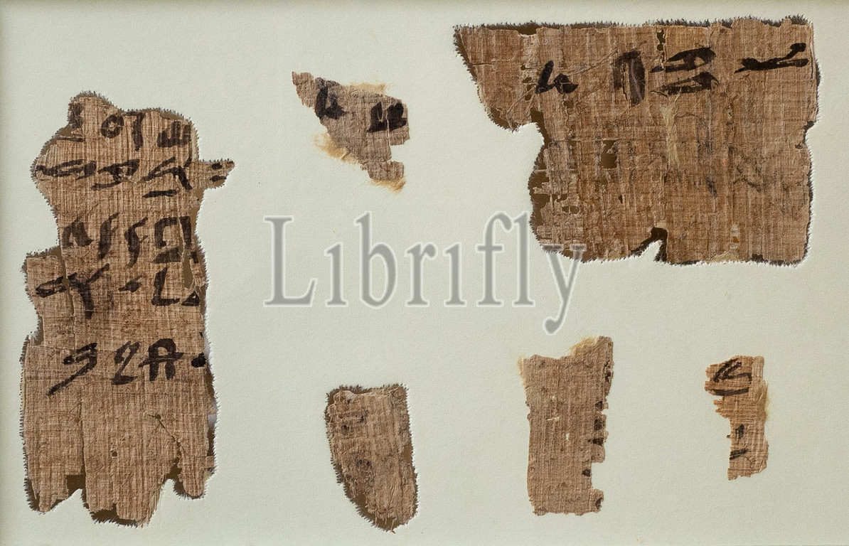 Heqanakht Papyrus Fragments, Middle Kingdom, Dynasty 12, ca, 1961–1917 B.C, Egypt, Upper Egypt, Thebes, Deir el-Bahri, Tomb, Ipy, TT 315, B, Meseh, 1921–22, Papyrus, ink, Fragment, H, 8 cm, 3 1/8, W, 3.5, 1 3/8, Fragment B, 4.3 11/16, 6.3, 2 1/2, Heqanakht, native, present day Luxor, early twelfth, dynasty, ka-servant, high official, responsible, statue cult, administration, land, income, endowed, maintain, cult