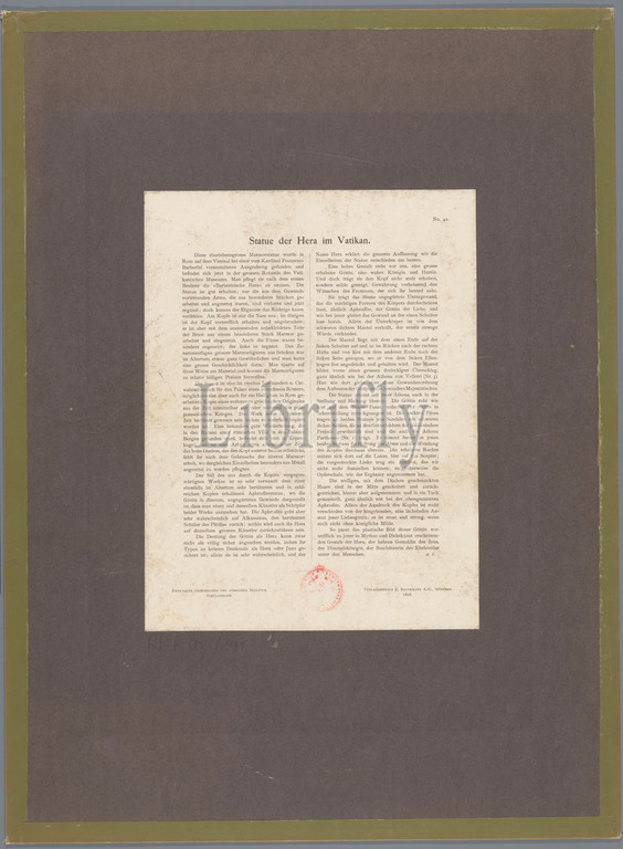 Hera Barberini, Vatican Museums, Statue der Hera im Vatikan, anonymous, publisher, Verlagsanstalt Fr, Bruckmann A.-G, mentioned, Vaticaanse Musea, publisher, München, 1898, cardboard, paper, collotype, height 388 mm, width 265 mm