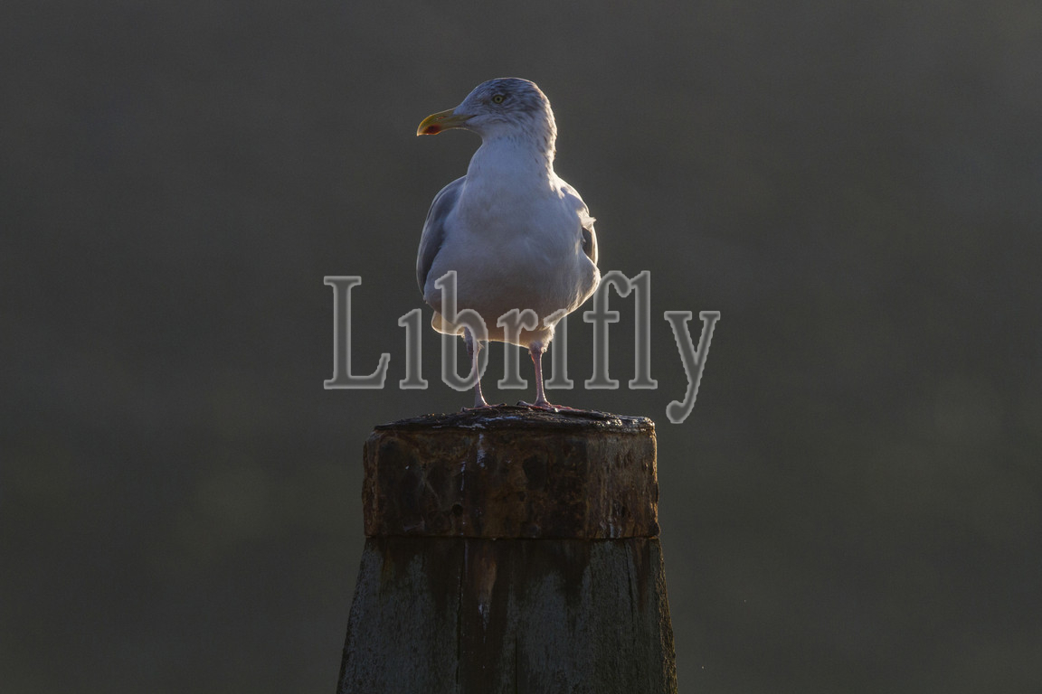 Herring Gull perched on pole, Netherlands