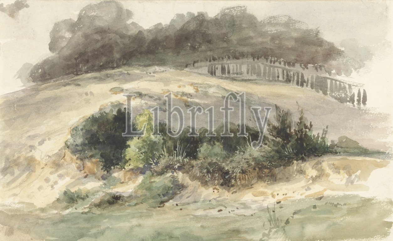 Hilly landscape, Drawing, group, drawings, landscapes, cityscapes, Italy, Rome, Tivoli, Civita Castellana, Pozzuoli, Pierre Louis Dubourcq, 1825, 1873, paper, watercolor, paint, chalk, brush