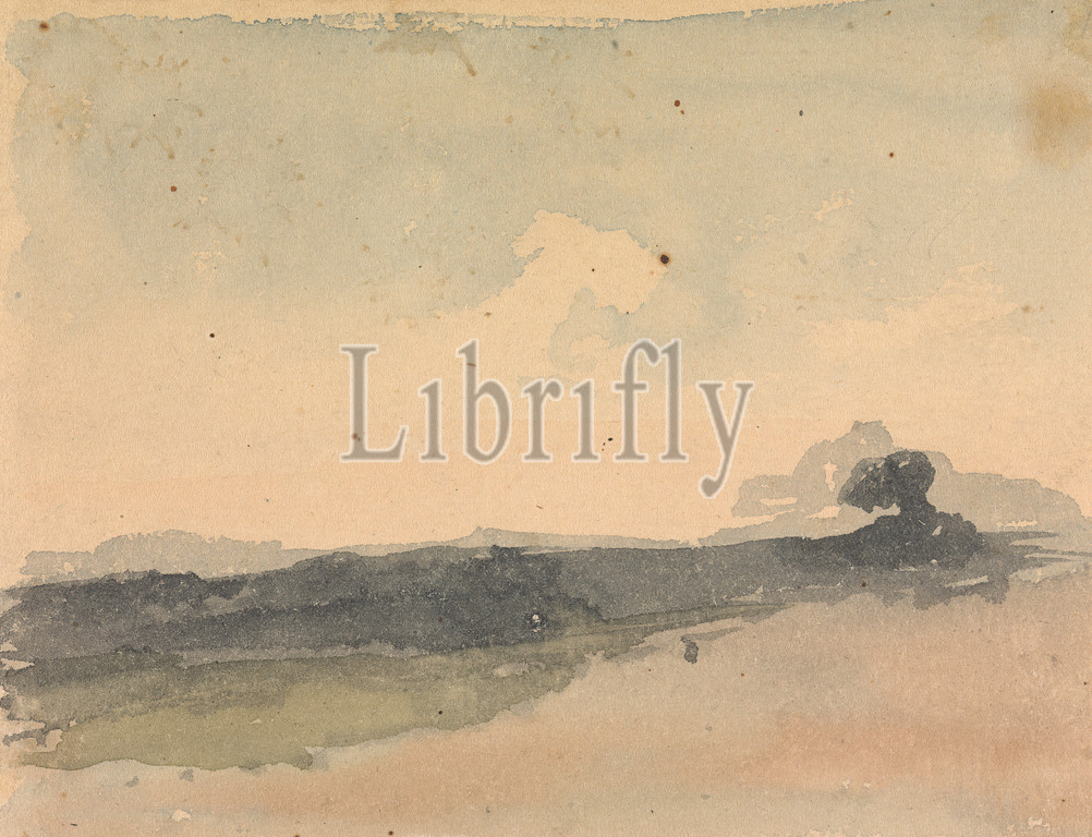 Hilly Landscape, Thomas Sully, 1783–1872, American, Watercolor, medium, slightly textured, beige, wove paper, Sheet