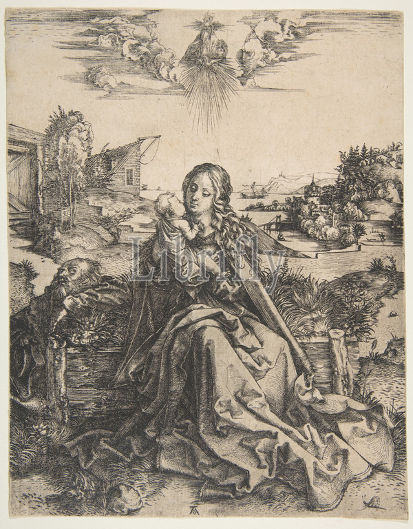 Holy Family, Dragonfly, ca, 1495, Engraving, Sheet, 9 5/16, 7 1/4, 23.6, 18.4 cm, Prints, Albrecht Dürer, German, Nuremberg, 1471–1528