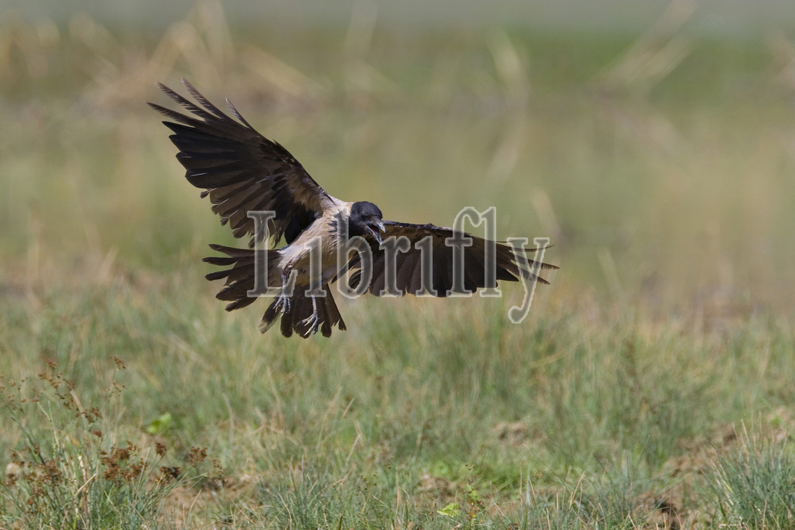 Hooded Crow in flight, Corvus cornix, Italy