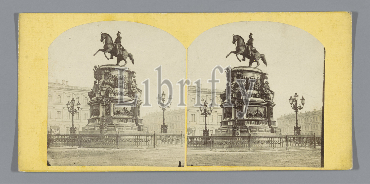 Horseman's statue, Nicholas I, Russia, St, Petersburg, anonymous, Sint-Petersburg, c, 1850, c, 1880, cardboard, albumen print, height 85 mm, width 170 mm