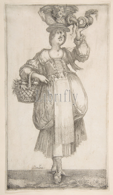 Hortulana, from Hortulanae series, 1611, Etching and engraving with drypoint, Sheet (trimmed): 12 1/2 × 6 15/16 in. (31.7 × 17.6 cm), Prints, Jacques Bellange (French, Bassigny (?) ca. 1575–1616 Nancy)