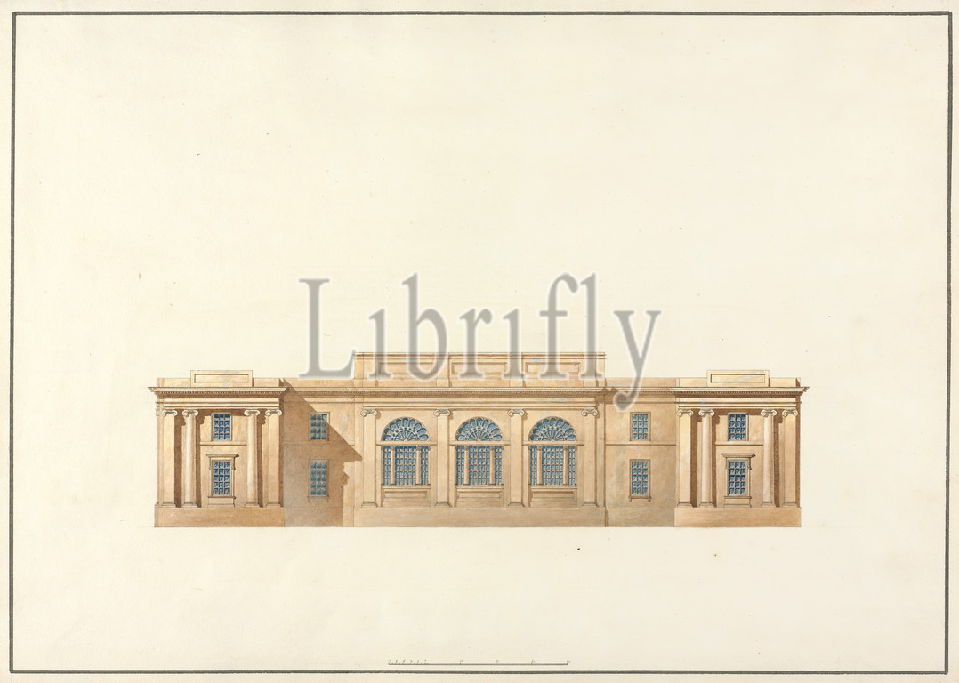 House, Assembly, Quebec, Elevation, Studio, Sir Jeffry Wyatville, 1766–1840, British, ca, 1812, Watercolor, pen, black ink, slightly textured, medium, white wove paper bar scale, 1, 14 inch, 1 foot, Sheet, architectural subject