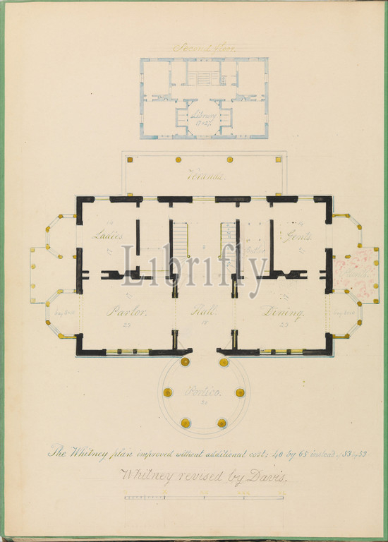 House, Henry Whitney, New Haven, Connecticut, revised plan, ca, 1836, Pen, ink, watercolor, graphite, Sheet, 16 15/16, 12 5/8, 43, 32 cm, Drawings