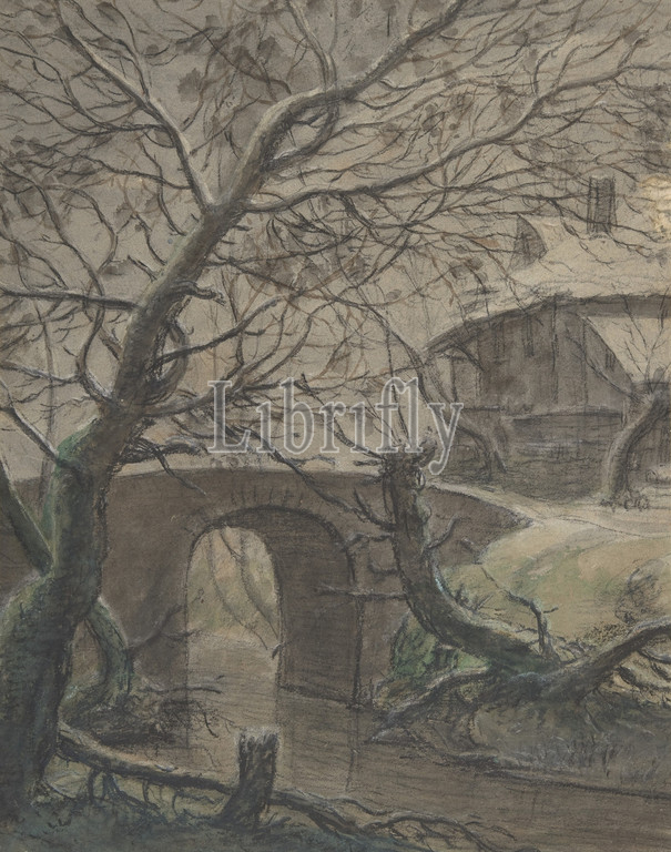 House, Bridge, 17th century, charcoal, white chalk, watercolor, gray paper, sheet, 14 x 11, 35.5 28 cm, Drawings, Anthonie Waterloo, Dutch, Lille, 1609–1690, Utrecht