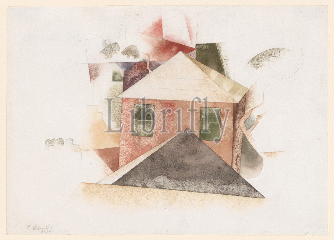 Houses, Red, 1917, Watercolor, graphite, paper, 10 x 14, 25.4 35.6 cm, Drawings, Charles Demuth, American, Lancaster, Pennsylvania, 1883–1935