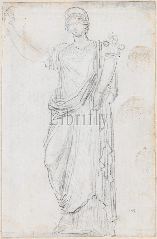 Hubert Robert, French, 1733, 1808, Statue, Abundance, Album, Drawings, p.23, c. 1754, 1765, black chalk, Overall