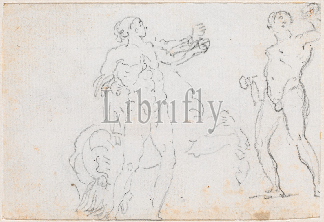 Hubert Robert, French, 1733, 1808, Two Studies, Statue, Alexander, Bucephalus, Album, Drawings, p.32, c. 1754, 1765, graphite, black chalk, laid paper, Overall