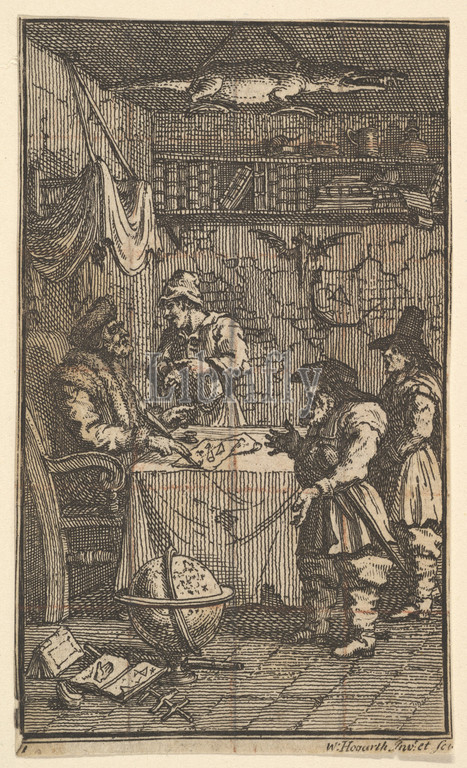 Hudibras Visiting Sidrophel, Seventeen Small Illustrations, Samuel Butler, Hudibras, no, 11, 1721–26, Etching, engraving, sheet, 4 1/4 x 2 11/16, 10.8 6.9 cm, trimmed, Prints, William Hogarth, British, London, 1697–1764