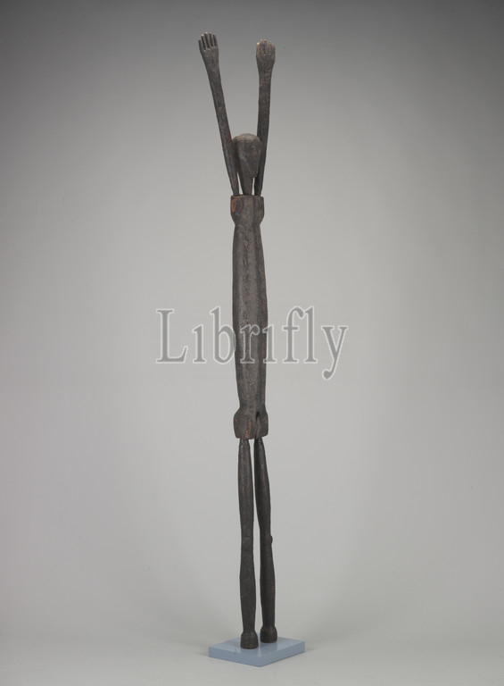 human figure, Lengola people, early 20th century, wood, pigment, incrustation, 80 x 14-1/4 x 5-1/2 in., African Art