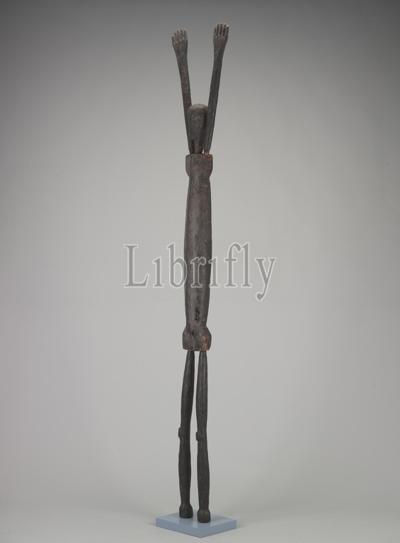 human figure, Lengola people, early 20th century, wood, pigment, incrustation, 80 x 14-1/4 x 5-1/2 in., African Art