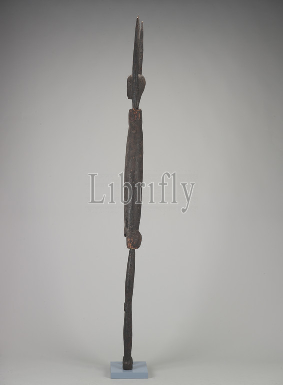 human figure, Lengola people, early 20th century, wood, pigment, incrustation, 80 x 14-1/4 x 5-1/2 in., African Art