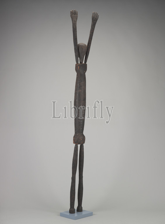 human figure, Lengola people, early 20th century, wood, pigment, incrustation, 80 x 14-1/4 x 5-1/2 in., African Art