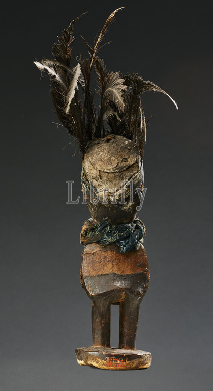 human figure (Nkisi), Yombe people, late 19th century - early 20th century, wood, glass, cloth, resin, feathers, 12-1/2 x 9 x 2-3/4 in. (including feathers), African Art
