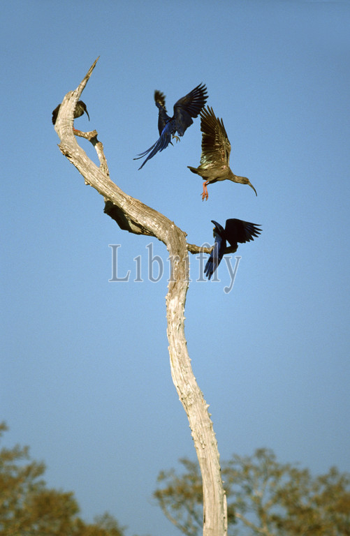 Hyacinth Macaw, fighting, Plumbeous Ibis, Theristicus caerulescens, Anodorhynchus hyacinthinus, nature, bird, animal, wildlife, wild, fauna, natural, feather, sky, beak, wing, outdoor, freedom, colourful, Liszt, Natural History, ornithology, vertebrate animals, photography, color image