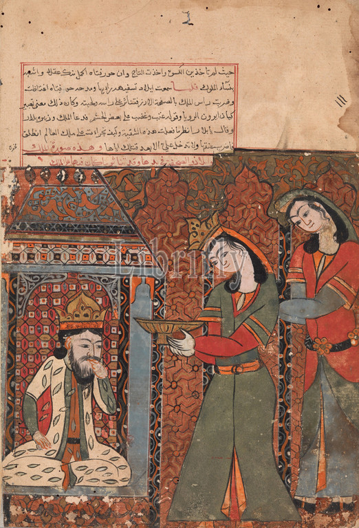 Ilar, Irakht, Throw, Bowl, Rice, King, Folio, Kalila wa Dimna, 18th century, Attributed, Egypt, Syria, Ink, opaque watercolor, paper, 12.5, high 8.87, wide, 31.8 cm high 22.6 wide, Codices