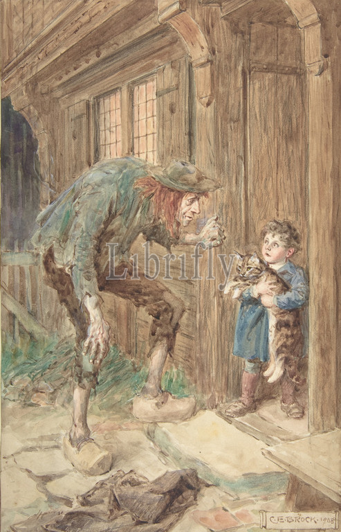 Illustration, Little Peter, Christmas Morality, Children, Any Age, 1908, Watercolor, graphite, touches, gouache, sheet, 11 5/8 x 7 5/16, 29.5 18.5 cm, Drawings, Charles Edmund Brock, British, London, 1870–1938, Cambridge