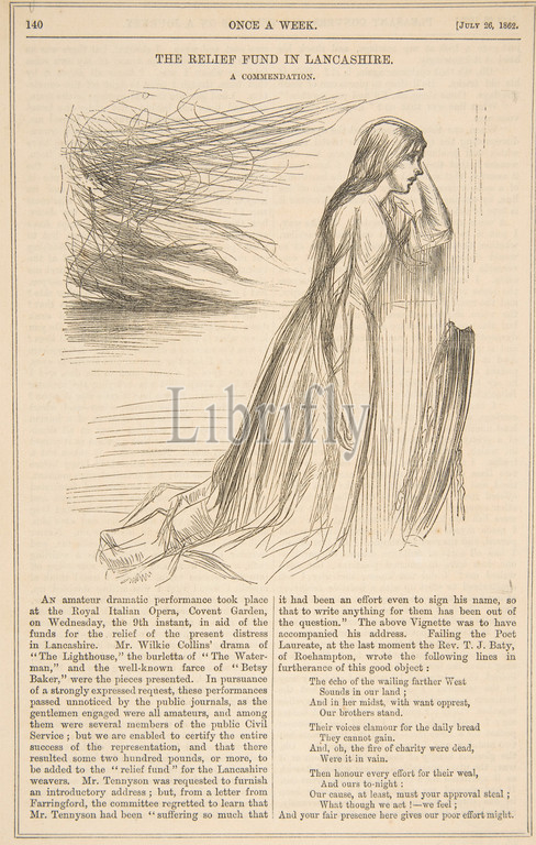 Illustration, Relief Fund, Lancashire, Once, Week, July 26, 1862, Wood engraving, Prints, After James McNeill Whistler, American, Lowell, Massachusetts, 1834–1903, London