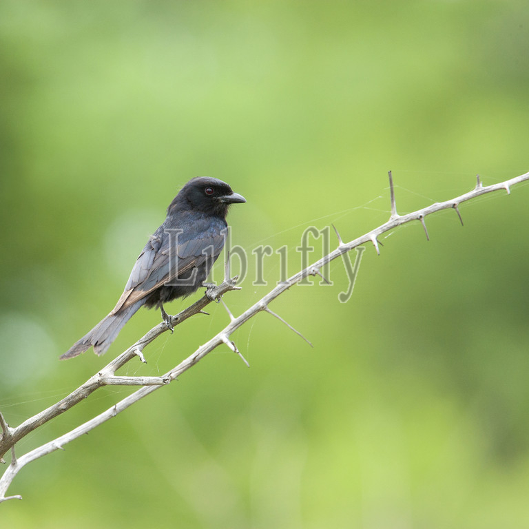 Immature Fork-tailed Drongo, Dicrurus adsimilis, South Africa