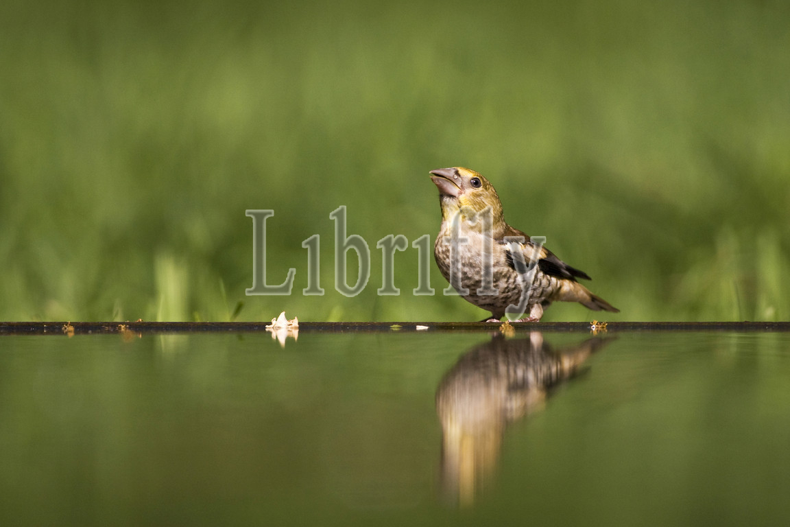 Immature Hawfinch at drinking site, Coccothraustes coccothraustes