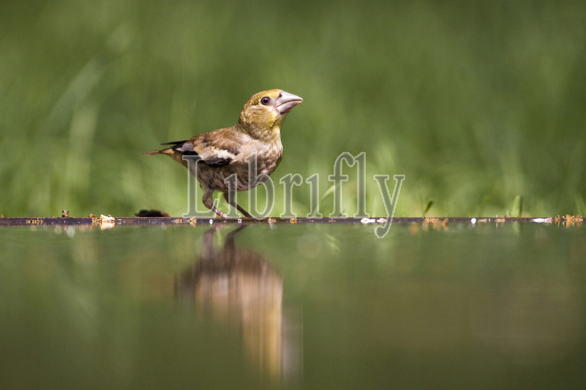 Immature Hawfinch at drinking site, Coccothraustes coccothraustes
