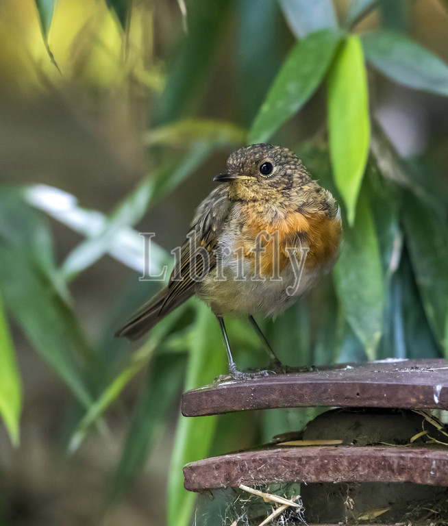 Immature male European Robin perched in a zoo, Brabant, Belgium July 2016, Erithacus rubecula