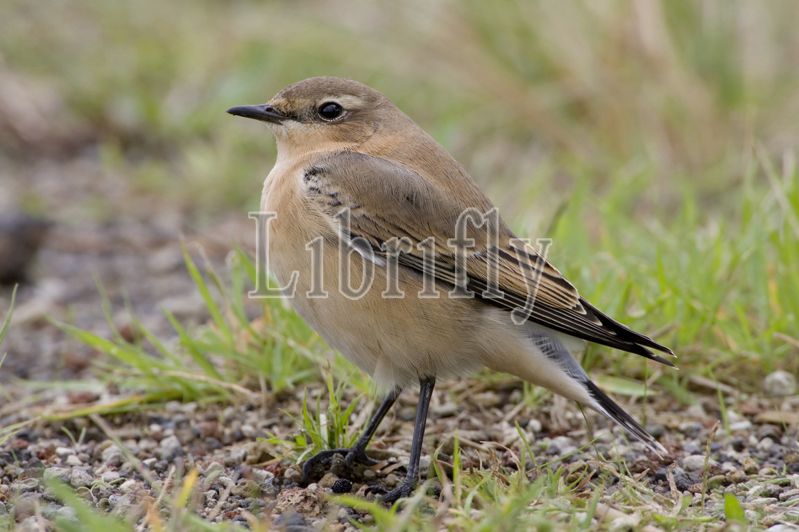 Immature Northern Wheatear perched on de ground, Oenanthe oenanthe