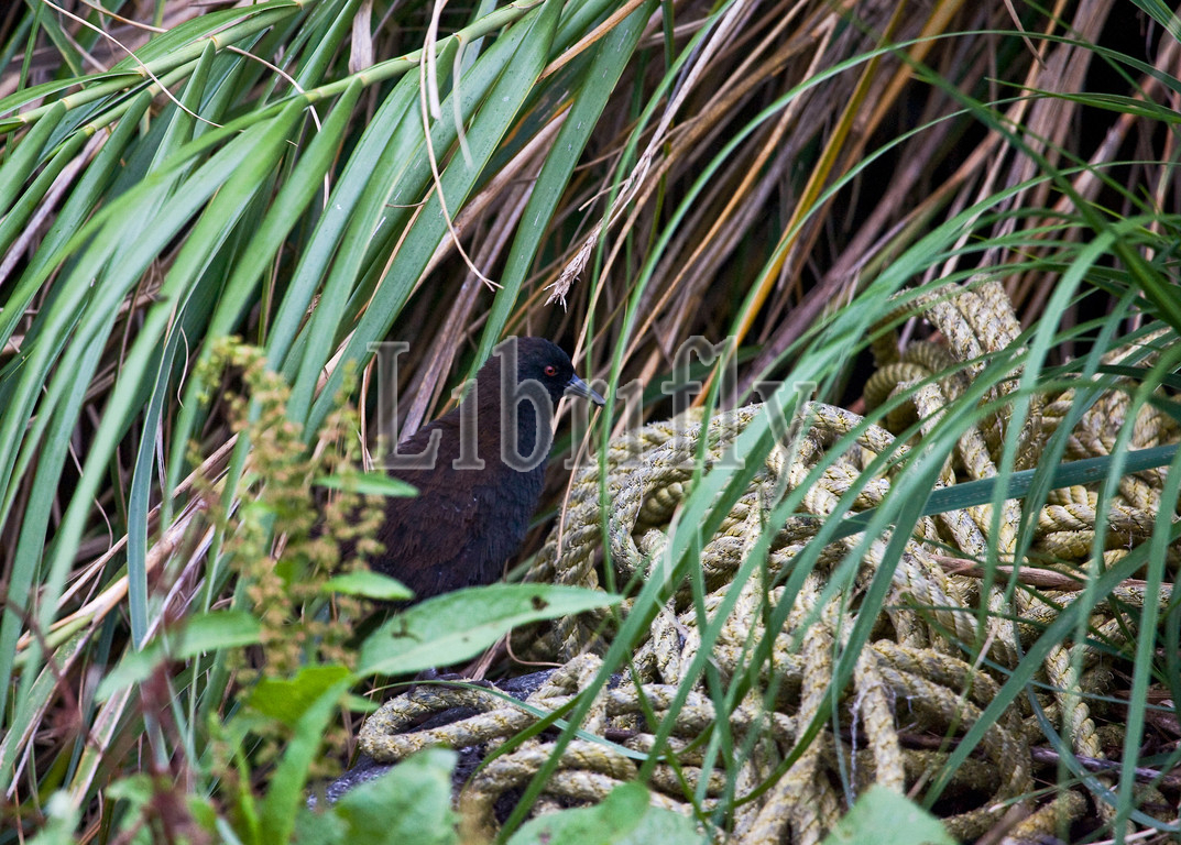 Inaccessible Island Rail in tussockgrass, Atlantisia rogersi