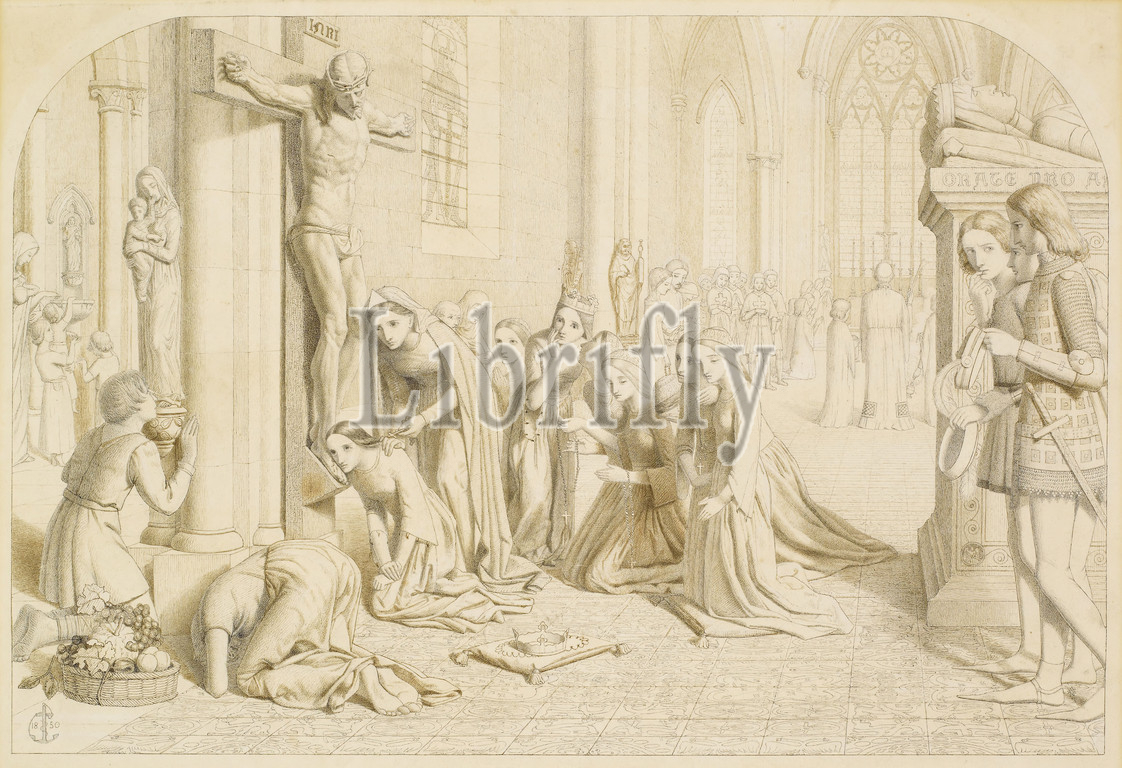 Incident, Life, Saint Elizabeth, Hungary, Compositional Study, 1850 James Collinson, Drawing, Ink, Pre-Raphaelite, Female, Male, Cross, Religion, Jesus Christ, Emotion, Sad, Royal, Queen, Pen