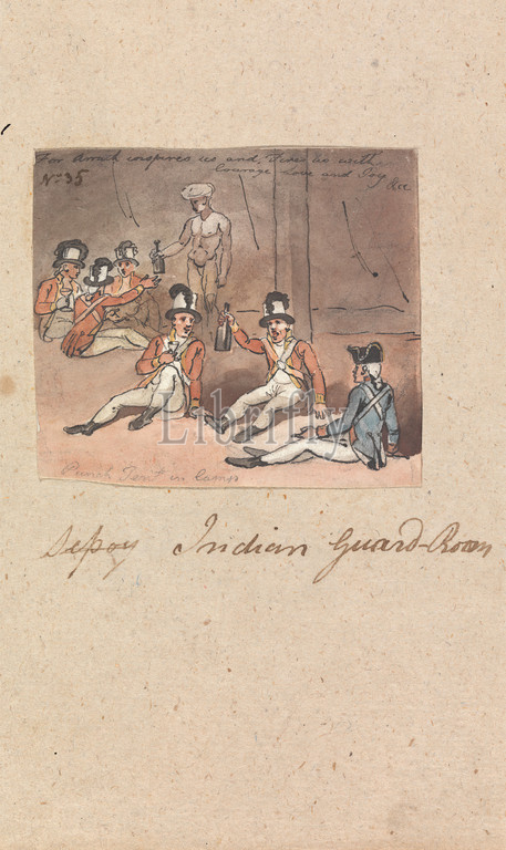 Indian Guard Room, Robert Mabon, died 1798, British, Watercolor, graphite, pen, black ink, medium, slightly textured, cream wove paper, Sheet, guard, Indian, military art, military, soldiers