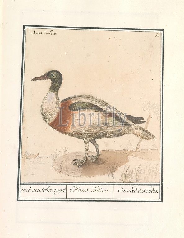 Indian runny duck, Anas platyrhynchos, Indian bird, Anas indica, Canard des indes, title, object, Duck, Indian walking duck, Numbered top right, 7, Top left, Latin name, Part, third album, drawings, birds, Fifth, twelve albums, animals, plants, 1600, commissioned, Emperor Rudolf II, explanations, Dutch, Latin, French, Anselmus Boetius de Boodt, 1596, 1610, paper, watercolor, paint, deck paint, pencil, chalk, ink, pen