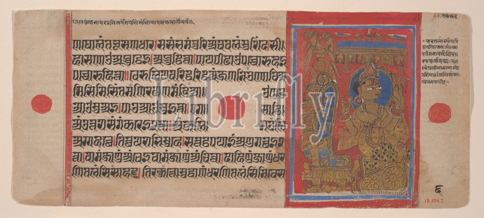 Indra Reverences Mahavira, Embryo, Folio, Kalpasutra Manuscript, 1461, Samvat 1519, India, Gujarat, Ink, opaque watercolor, gold, paper, 4 3/8 x 10 1/8, 11.1 25.7 cm, Paintings