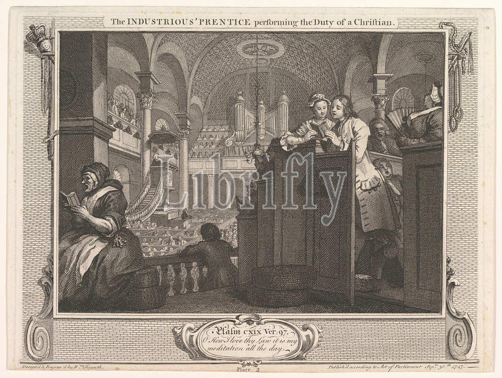 The Industrious 'Prentice Performing the Duty of a Christian (Industry and Idleness, plate 2), September 30, 1747, Etching and engraving; second state of two, plate: 10 3/8 x 13 9/16 in. (26.3 x 34.5 cm), Prints, William Hogarth (British, London 1697–1764 London)