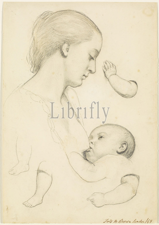 Infant, Repast, Study, Mother, Child, separate Arm, Leg Studies, Child, 1848 Ford Madox Brown, Art Movement, Pre-Raphaelite, Drawing, Pencil, Chalk, Sketch, Baby, Child, Mother, Study