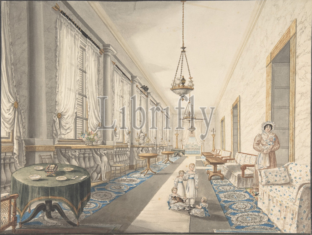 Interior, Leningrad?, ca, 1825, Watercolor, sheet, 13 1/16 x 16 15/16, 33.2 43 cm, Drawings, Charles de Brocktorff, Danish, active, 1830