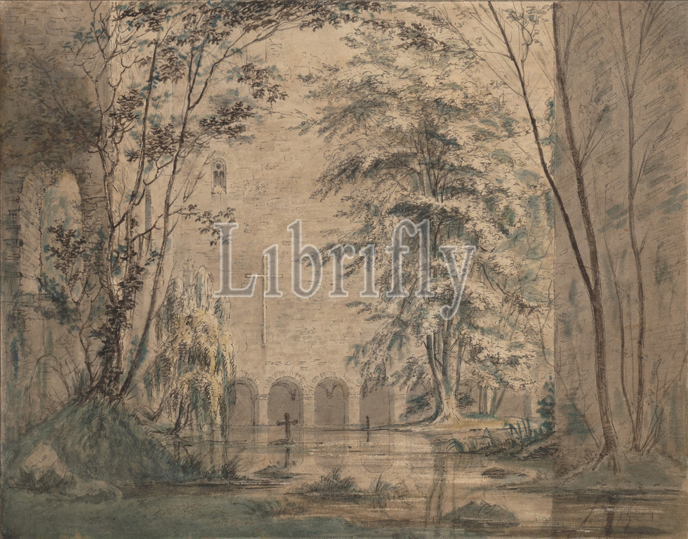 Inundated Ruins, Monastery, ca, 1824, Pen, black ink, watercolor washes, sgrafitto, Sheet, 10 1/4 x 13 1/8, 26 33.3 cm, Drawings, Karl Blechen, German, Cottbus, 1798–1840, Berlin, Caspar, David, Friedrich, Johan Christian, Clausen, Dahl, exerted, major influence, art, termed, leading landscapists, German Romanticism, overtly subjective, painter, transformed, observations, nature, architecture, means, imagination, technical experiments